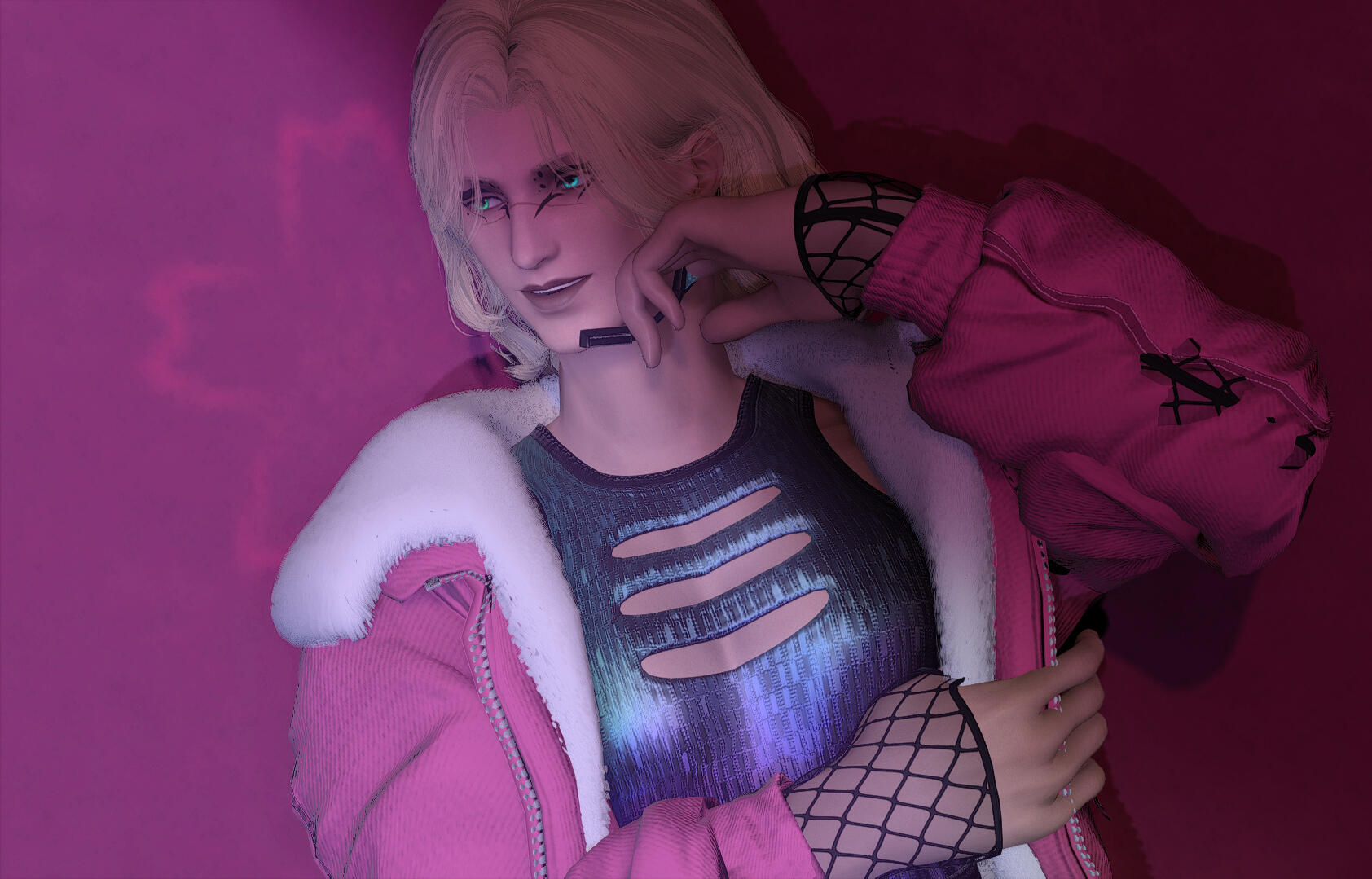 Slate can be found in any manner of clothing, just depending on her mood. She keeps her hair at shoulder-length, and highlights her natural blonde with bright teal (or pink!). Her eyes - probably augmented - are an equally bright teal! She almost always wears lip gloss and eyeliner. Sometimes she conceals her prosthetics, and sometimes she doesn't. She's also awfully thin and fairly short for her age.